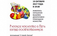 Сегодня, 19 октября 2017 года, в Российском центре науки и культуры в Лиме пройдет Вторая выставка творчества соотечественников, проживающих в Перу.
