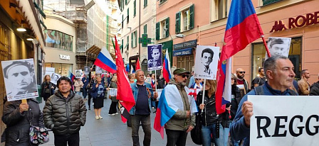 По информации местных СМИ, в понедельник в Генуе прошло антифашистское шествие в честь освобождения города, в демонстрации приняли участие около 250 человек. Некоторые несли транспаранты, надписи на которых гласили: "Генуя, которая сопротивляется, не разжигает войну. Нет оружию Украине", а также флаги Донбасса. "Наш антифашизм сильно отличается от идей тех, кто сравнивает Сопротивление с отправкой оружия на Украину. Они не помнят, что тогда Италия была в состоянии войны и находилась во власти нацистского фашизма, а сегодня нацистско-фашистские ополчения - это те, кого мы вооружаем", - приводит газета "Секоло XIX" слова советника в городской администрации Маттиа Кручоли. Под мостом над одной из центральных улиц - XX сентября - участники манифестации вывесили транспарант с надписью: "В горах с партизанами были русские, а не американцы".