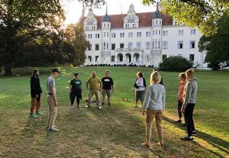 В старинном замке недалеко от Берлина собрались почти восемьдесят детей и взрослых. Программа арт-отдыха для всей семьи состояла из трех частей: для взрослых, детей и подростков. Гостям было предложено составить персональную программу фестиваля, выбрав по своему вкусу для посещения телесные, остеопатические, танцевально-терапевтические и дыхательные практики.