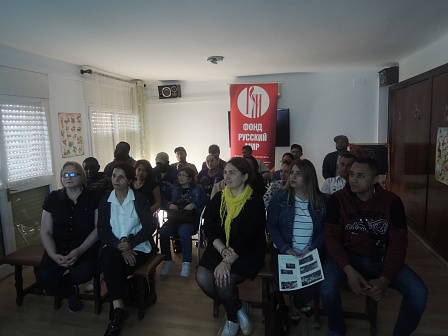 Гостям рассказали о географическом расположении страны, показали ее разнообразную флору и фауну, кратко познакомили с обычаями и традициями. Состоялось виртуальное путешествие по российской столице. Участники мероприятия побывали на Красной площади, узнали об истории строительства Кремля, прогулялись по Москве-реке, любовались храмами и средневековой архитектурой. Узнали о Третьяковской галерее, музеях Космонавтики и Великой Отечественной войны. Особый интерес вызвала акция «по раздаче георгиевских ленточек и международное общественное движение «Бессмертный полк».