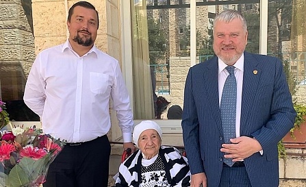 Поздравить юбиляра приехали советник Посольства России Игорь Мартынов и руководитель представительства Россотрудничества в Израиле Денис Пархомчук.