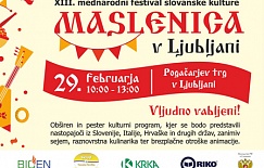 29 февраля 2020 года в 10.00 на центральном рынке Любляны начнутся ставшие традиционными масленичные гуляния. Масштабное праздничное событие ежегодно вызывает интерес к самобытным культурным традициям славянских народов у детей, молодежи, а также взрослых жителей и гостей словенской столицы.