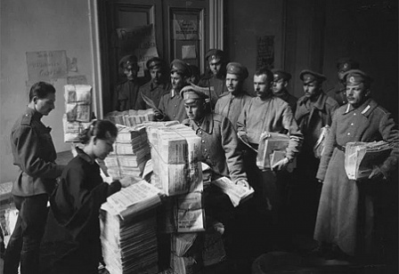 Фото: Я.В. Штейнберг. Выдача представителям воинских частей газеты «Известия Петроградского Совета» в Таврическом дворце. Петроград, март 1917 ©Московский Дом фотографии