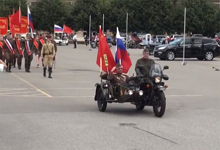 Колонну, торжественно открывшую шествие ассоциации, возглавил мотоцикл «Урал» советских времен, на котором, отдавая честь, проехал Вячеслав Волков. В день парада ему исполнилось 90 лет.