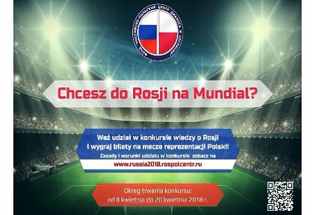 Фонд «Российско-польский центр диалога и согласия», поддерживающий культурные инициативы и молодежные обмены между Россией и Польшей, объявляет конкурс знаний о России и культурно-исторических связях России и Польши «В Россию на футбол!». Конкурс предназначен для граждан от 18 до 36 лет, проживающих на территории Польши и желающих посетить Чемпионат мира по футболу.