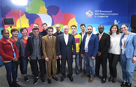 Президент Российской Федерации Владимир Путин встретился с участниками XIX Всемирного фестиваля молодёжи – студентами и молодыми специалистами из России, Малайзии, Индонезии, Франции, Ямайки, США, Индии, Зимбабве.