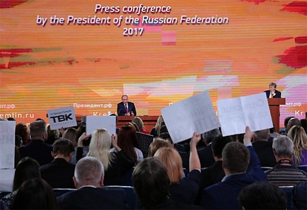 Сегодня проходит большая пресс-конференция Владимира Путина. Прямую трансляцию осуществляют телеканалы «Россия-1», «Россия-24» и Первый канал, радиостанции «Маяк», «Вести ФМ» и «Радио России». Текст ответов публикует пресс-служба Кремля.