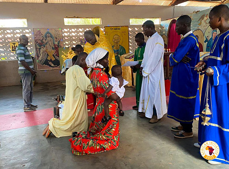 Рождественская служба также состоялась в православном храме Святого Андрея в городе Банги, столице Центральноафриканской Республики. В канун праздника здесь проводили одно из важнейших церковных таинств - крещение детей.