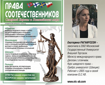 В номере – статьи о трудовом законодательстве в странах проживания российских соотечественников: Норвегии, Швеции, Финляндии, Польше.