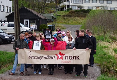 В Норвегии праздник Победы отмечали два дня – 8 и 9 мая. 8 мая Бессмертный полк прошел в бывшем концлагере Фалстад у памятника на расстрельном месте (около 80 км на север от Тронхейма): были здесь норвежцы и русские, белорусы и украинцы, армяне и другие неравнодушные. Почтили память узников лагеря мэр Левангера, ветераны, школьники, местное население, представители Союза офицеров Норвегии, солдаты Министерства обороны, байкеры, священник и прихожане русского православного прихода в Тронхейме.