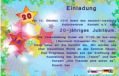 В октябре 2016 года исполняется 20 лет русско-немецкому культурному Центру в Шверине, который является средоточием культурной жизни не только русскоязычного населения, но и жителей города многих национальностей.