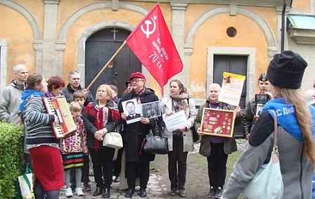 Рассказывает председатель Союза Людмила Сигель: «Жители Швеции сознают, что во время войны, в целом, вели себя не как герои. Что правительство разрешало пройти фашистским эшелонам с немецкими отпускниками, например, и большинство жителей одобряло такие действия. В Стокгольме есть памятник шведским антифашистам. В прошлом году шествие к этому памятнику организовали греки. Испанцы устроили на День Победы вечер песни. В Лулео (город на северо-востоке Швеции. - moypolk.ru) создан памятник на месте пересыльного лагеря в Карлсвике, это заслуга нашей членской организации «Спутник» из Лулео. Союз русских обществ участвовал также в создании памятника на месте лагеря интернированных советских граждан в Бюринге, и каждую осень мы ездим на День Бюринге по приглашению местного шведского общества землевладельцев - с пирогами, песнями, костюмами, рассказами, цветами, ленточками георгиевскими. Инициаторами установки памятника были шведы из этого общества землевладельцев. Нас они сами нашли. Там, в Бюринге, остались несколько десятков моряков, не все уехали, и их дети и внуки приходили на встречи. Мы расшифровали все учетные карточки 164 интернированных моряков этого лагеря, переписали с латиницы имена кириллицей. Установлен памятный камень на месте другого лагеря для интернированных советских граждан - в коммуне Шинскаттеберг. В Мальме есть могилы советских солдат, и за ними ухаживают члены Общества дружбы, председатель Бенгт Браттмарк. На 9 мая коммунисты устраивали праздник Дня Победы на главной площади Стокгольма, впервые там громко звучали «Вставай, страна огромная» и «Прощание славянки». Многие русские здесь имеют шведское гражданство, и эти шведские русские проделывали, например, в Фалуне, марш-бросок со знаменем Победы - к ужасу местного населения. Женский комитет Форума этнических организаций Швеции провел выставки в трех городах «Война и забытая женщина», мы там были со своей частью, а итальянки и полячки тоже рассказывали о Второй мировой войне».