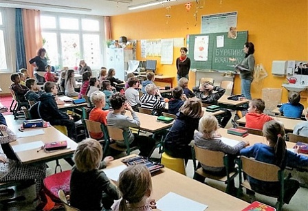 В школе нас уже ждали. Около нашего плаката с Буратино столпились ребята, живо обсуждая рисунок. Пара ребят из русскоязычных семей объясняли, что это как раз Буратино, а не Пиноккио. Шум стоял нешуточный. Мы написали «Буратино» по-русски и по-немецки на доске, и сразу несколько человек попытались прочесть кириллицу — среди них был и мальчик, чьи родители приехали из Болгарии.