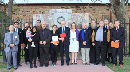 Фото: О.Гавриил (в центре) и члены Правления ТКС штата Квинсленд на открытии Мемориала Дэвида Гарланда