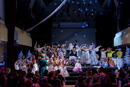 За час, что длилось новогоднее шоу, на сцене выступило более 100 детей: одни стали участниками постановки, другие танцевали, третьи пели. Череда ярких номеров, сшитых как лоскутное шитьё в единую новогоднюю сказку, держала зал в постоянном внимании.